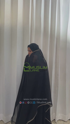 Double Layer Pippen Geotgette Abaya in Black Color With Hijab (033)