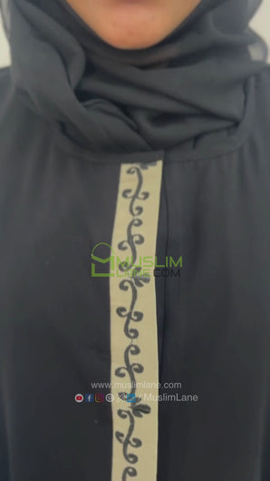 Front Open Patti & Cuff Embroidery Abaya in Black Color With Hijab (017)