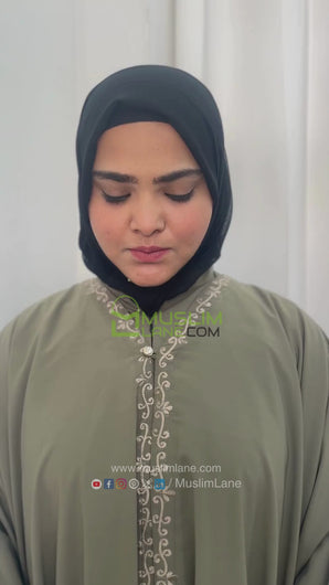 This designer kaftan is designed with beautiful work on the bodice and sleeves. This article has an Inner abaya with an upper kaftan. Perfect for a special occasion or daily wear. This article is made of Nida Matte fabric which is very Soft, Breathable, Light Weight and easy to maintain. A complementary Hijab that comes with this Islamic dress makes it more affordable.Â