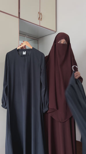 ✨ Plain A-Line Abaya Set with Matching Single-Layer Tie-Back Khimar | Modest Islamic Wear
