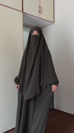 Premium Matching A Line Abaya and Single Layer Khimar :: Mehandi Color :: Firdous Crepe