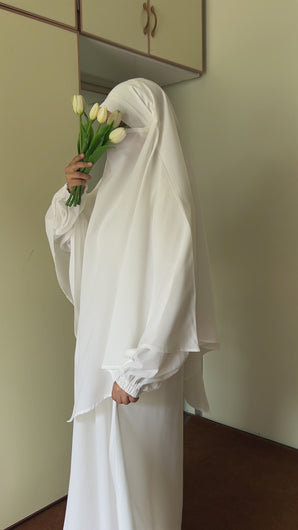 Premium Matching A Line Abaya and Single Layer Khimar :: White Color :: Firdous Crepe