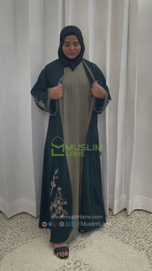 Shrug Embroidery Abaya in Green Color With Hijab (030)